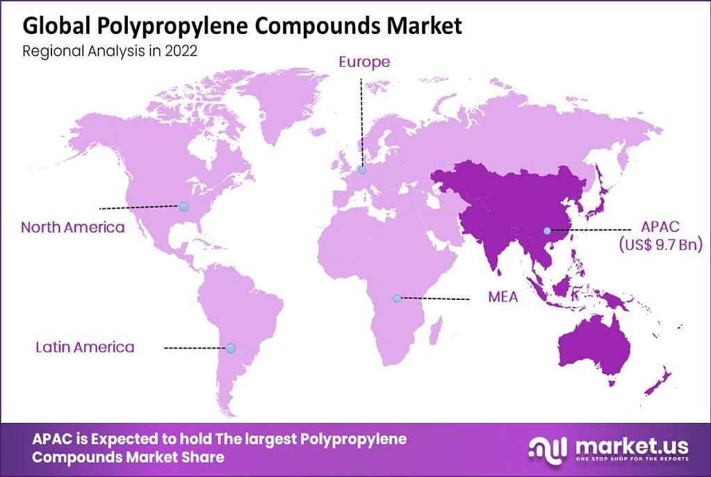 • Regional Analysis: When studying the global polypropylene compounds market, regional examination provides additional perspectives into its growth and potential. Asia-Pacific is by far the biggest regional market with a 46% revenue share of polypropylene compound sales originating there; China and India play significant roles as drivers of this expansion.