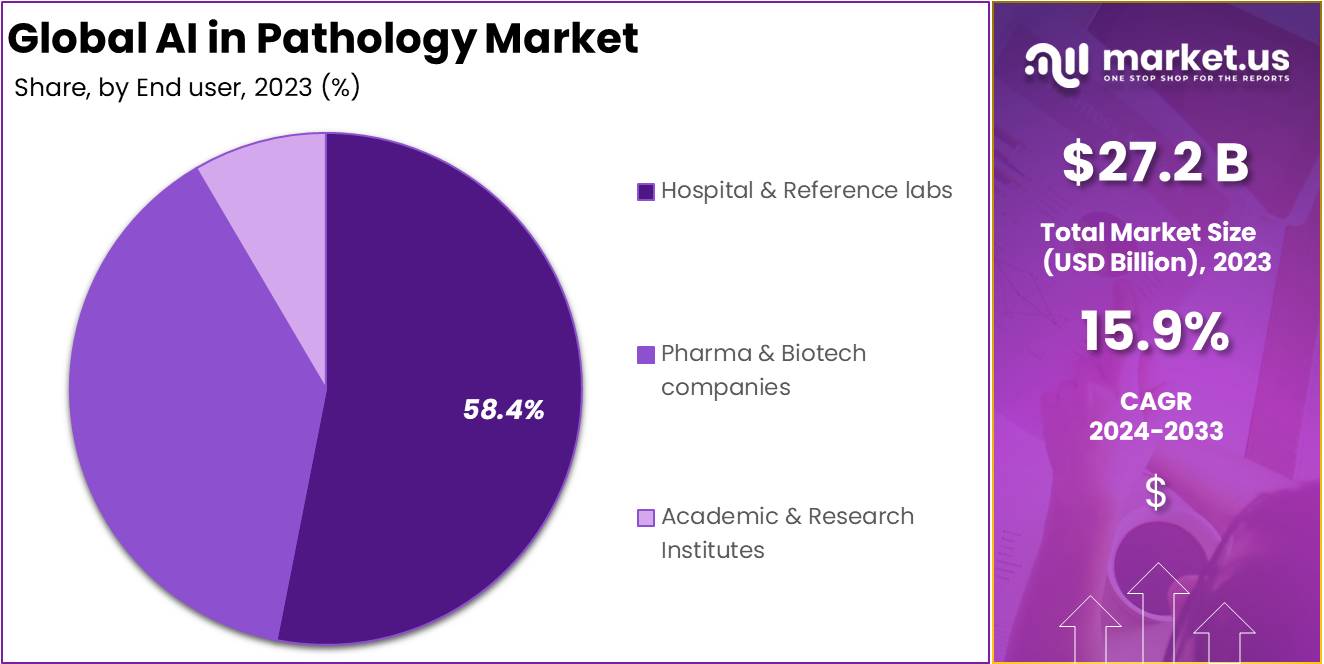 • Hospitals and reference laboratories hold a leading position in the global AI in pathology market due to growing disease prevalence.