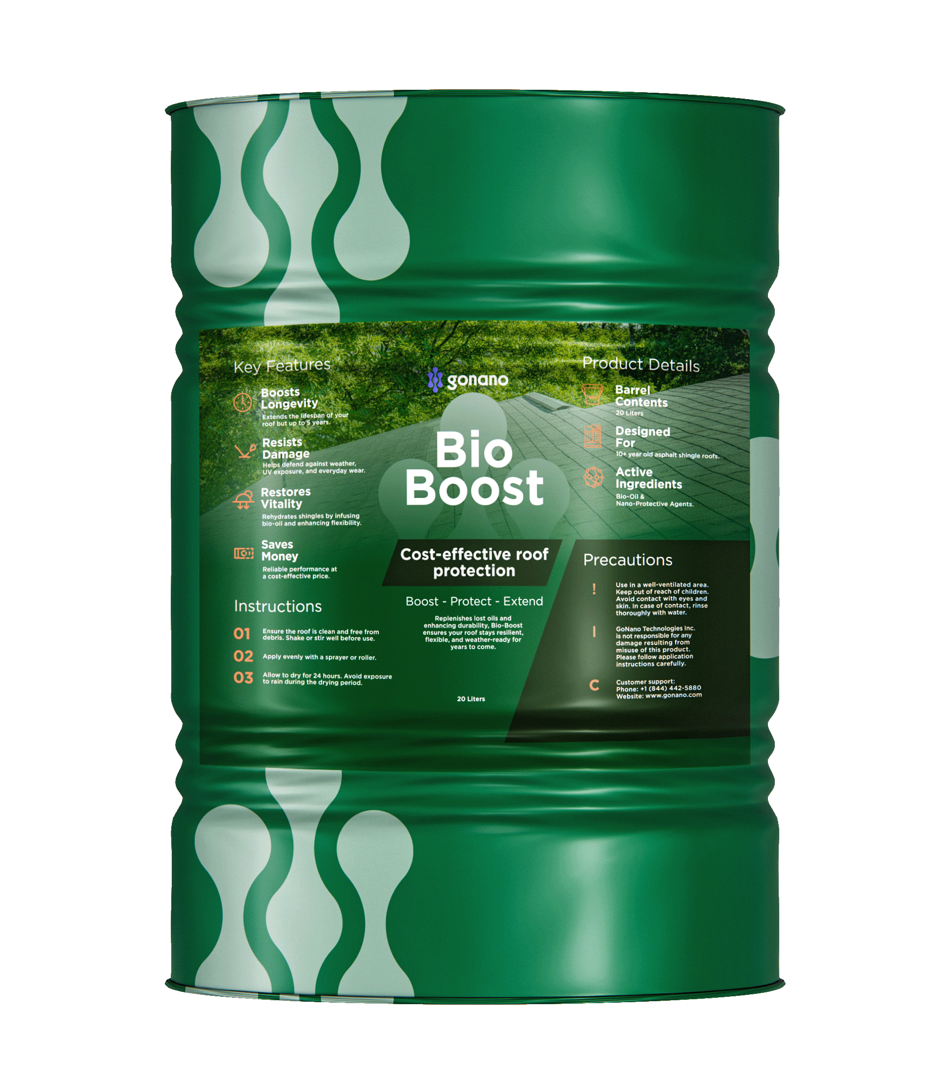Bio-Boost isn’t just another bio-oil product—it’s engineered for performance. Combining proprietary nano silica particles with renewable bio-oils, Bio-Boost offers a long-lasting water-repellent barrier, slows oxidation, and restores shingle flexibility. This fusion of eco-conscious formulation and advanced nanotechnology makes it significantly more effective than traditional soy-based competitors.