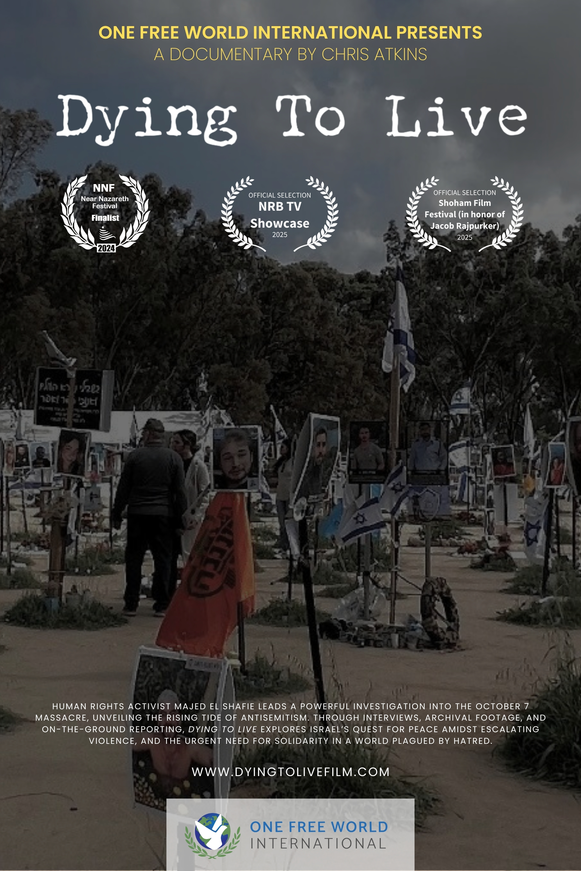 "Dying To Live" follows human rights activist Majed El Shafie, founder of One Free World International, as he leads a powerful investigation into the Oct. 7 Massacre, a tragic event emblematic of the rising tide of anti-Semitism worldwide. Viewers will meet first responders, forensic specialists, UN officials, doctors, police, intelligence officials and world leaders, as well as survivors of the massacre and families of hostages. Through interviews, archival footage, and on-the-ground reporting, the documentary explores Israel's quest for peace amidst escalating violence, highlighting the urgent need for solidarity and understanding in a world plagued by prejudice and hatred.