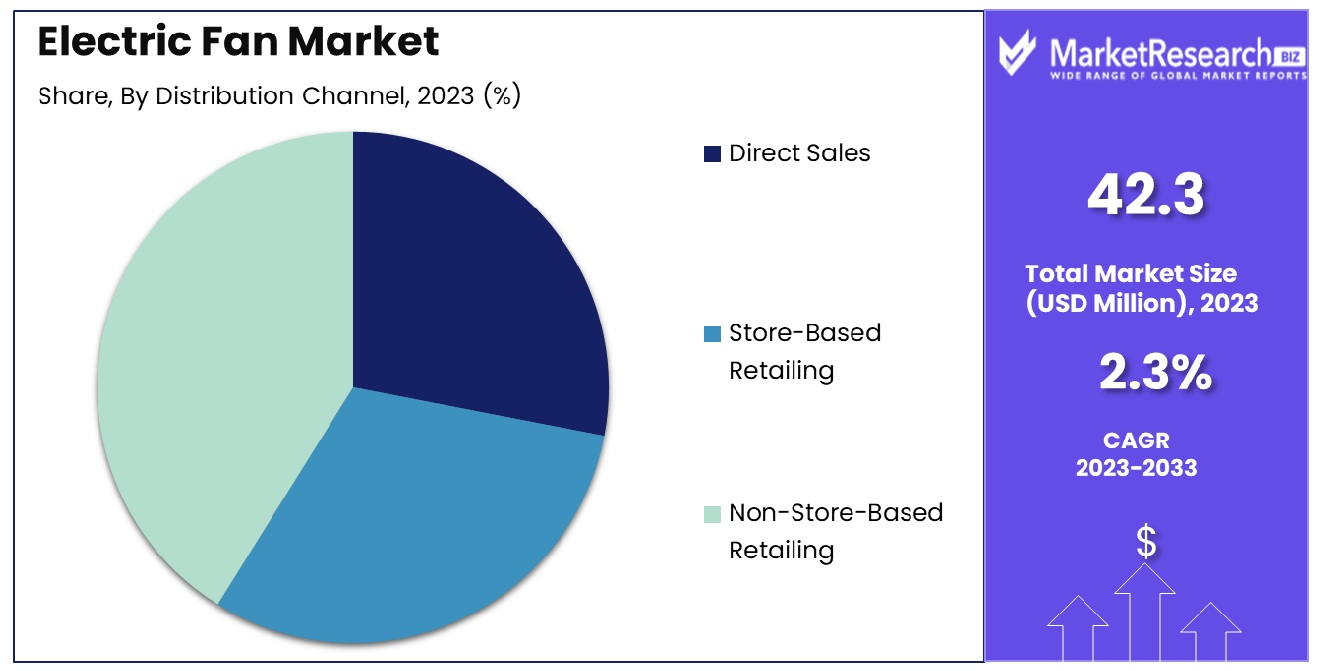 The Electric Fan Market is segmented by product type, distribution channel, and application. Product types include wall fans, table fans, ceiling fans, exhaust fans, and pedestal fans, each catering to specific consumer needs and environmental conditions. Pedestal fans dominate this segment with a 36% market share, appreciated for their versatility and effectiveness across settings.
