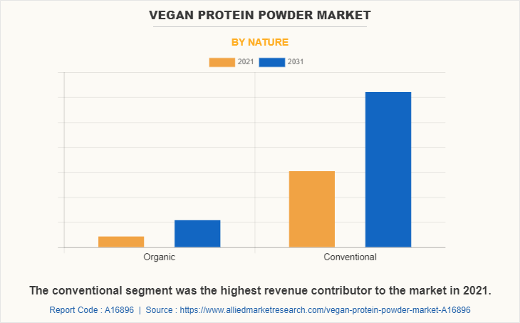 An increase in the incidence of health problems such as edematous malnutrition, increase in infections, slow healing of muscles, and others boosts health and fitness consciousness among consumers. The adoption of vegetarian foods is on a consistent increase across the world. According to recent studies, 30% of Americans are not only leaving meat off their plates but also seeking out plant-based meat alternatives. Consumers are expected to become selective in their food habits to avoid severe health issues. This in turn is anticipated to drive the vegan protein powder market demand.