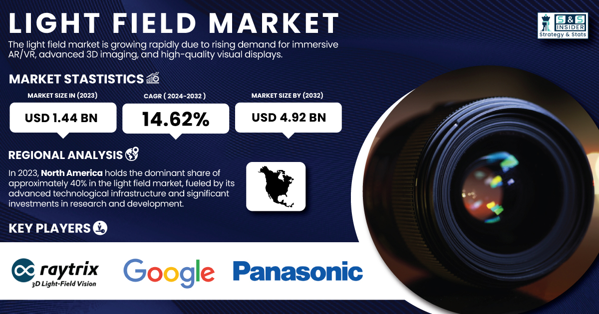 AUSTIN, TX, UNITED STATES, January 30, 2025 /EINPresswire.com/ -- Market Size & Industry InsightsAs Per the SNS Insider,“The Light Field Market Size was valued at USD 1.44 Billion in 2023 and is expected to reach USD 4.92 Billion by 2032 and grow at a CAGR of 14.62% over the forecast period 2024-2032.”