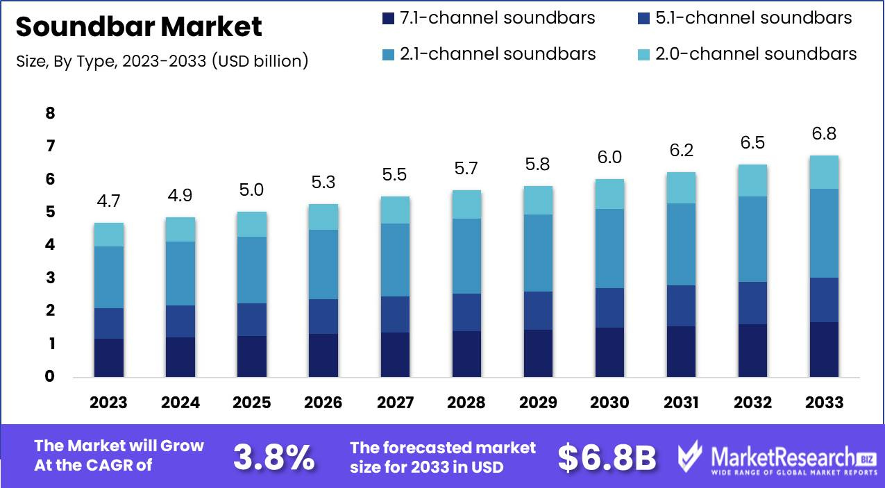 Soundbar Market Incorporating Advanced Technologies By USD 6.8 billion by 2033. Region at 38% Market Share