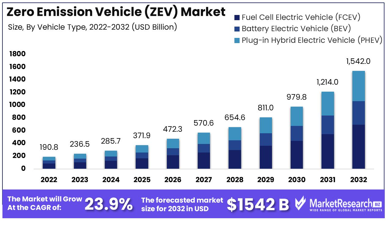 Zero-Emission Vehicles Market Set to Grow from USD 190.84 Billion in 2022 to USD 1542.0 Billion by 2032 with a CAGR of 23.9%