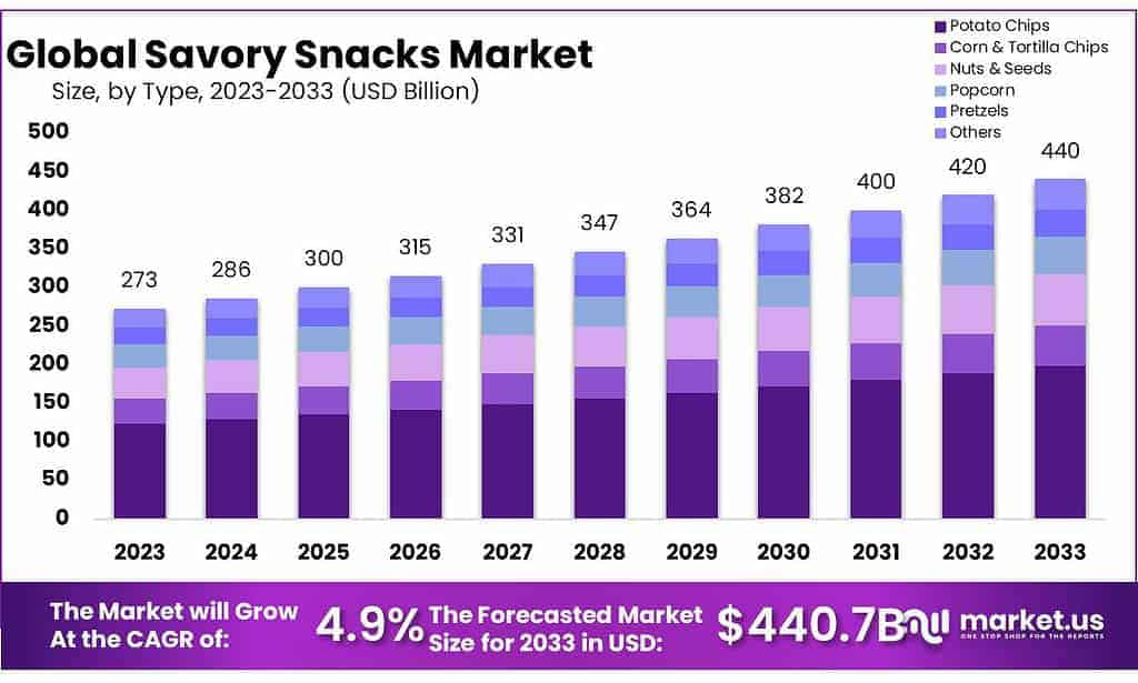 Savory Snacks Market Poised for Steady Growth, Projected to Reach USD 440 Billion by 2033