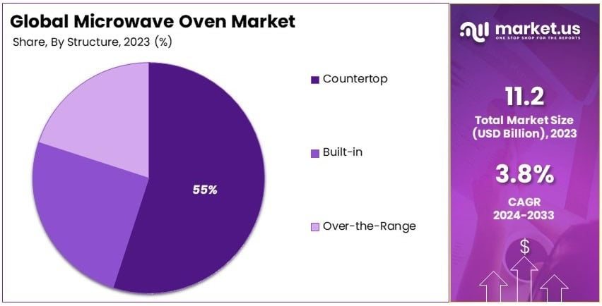 - Countertop microwave ovens accounted for 55% of the market in 2023, due to their affordability and ease of installation in households.