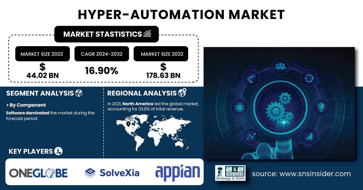 AUSTIN, TX, UNITED STATES, January 31, 2025 /EINPresswire.com/ -- The Hyper-Automation Market was valued at USD 44.02 Billion in 2023 and is projected to reach USD 178.63 Billion by 2032, growing at a compound annual growth rate (CAGR) of 16.90% from 2024 to 2032.Get Sample Copy of Report: https://www.snsinsider.com/sample-request/3415