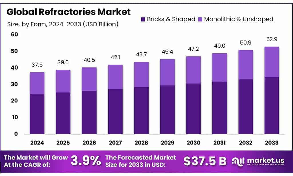 Refractories Market to Reach USD 52.9 Billion by 2033, Growing at a 3.9% CAGR from USD 37.5 Billion