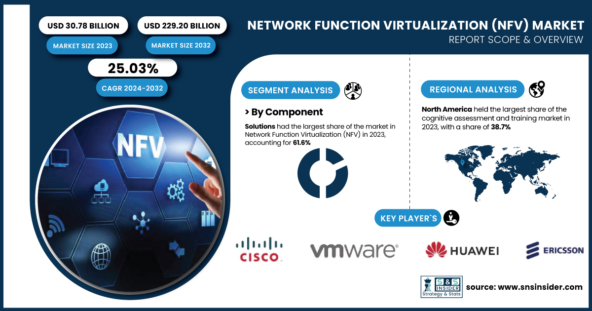 AUSTIN, TX, UNITED STATES, January 31, 2025 /EINPresswire.com/ -- The growth of the Network Function Virtualization (NFV) market is driven by the increasing demand for flexible, scalable network solutions and the shift from hardware-based to software-defined infrastructures. NFV enables more agile, cost-effective network management, particularly in telecommunications.The Network Function Virtualization (NFV) Market was valued at USD 30.78 billion in 2023 and is expected to grow to USD 229.20 billion by 2032, at a CAGR of 25.03% over the forecast period of 2024-2032.