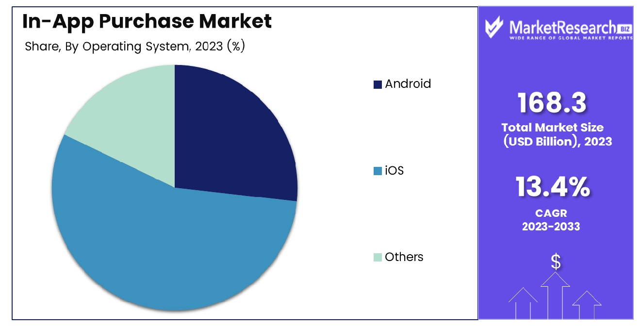 Market Value: The Global In-App Purchase Market was valued at USD 168.3 Bn in 2023. It is expected to reach USD 573.5 Bn by 2033, with a CAGR of 13.4% during the forecast period from 2024 to 2033.