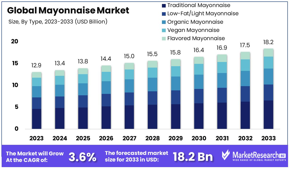 Mayonnaise Market to Reach USD 18.2 Billion by 2033, Growing at a 3.6% CAGR from USD 12.9 Billion