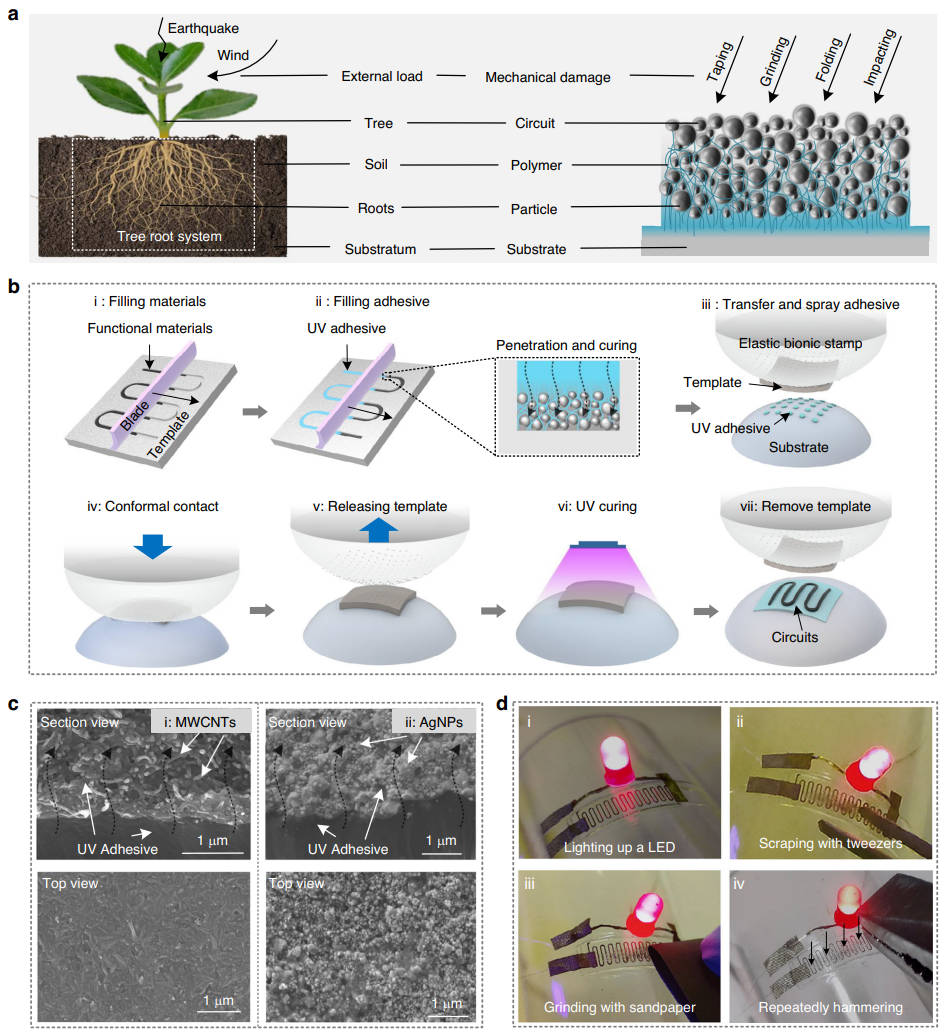 Researchers at Xi'an Jiaotong University have developed a cutting-edge solution to these challenges. In a study (DOI: 10.1038/s41378-024-00840-z) published on January 6, 2024, in Microsystems & Nanoengineering, the team introduced the Template-Constrained Additive (TCA) printing technology. This new approach, inspired by the strength of tree root systems, enhances the mechanical robustness of circuits, enabling them to withstand extreme conditions, including temperatures up to 350°C and intense mechanical wear. The TCA technology also achieves high-resolution printing capabilities, with a precision of up to 300 nm, and supports a diverse range of materials, such as P(VDF-TrFE), MWCNTs, and AgNPs.
