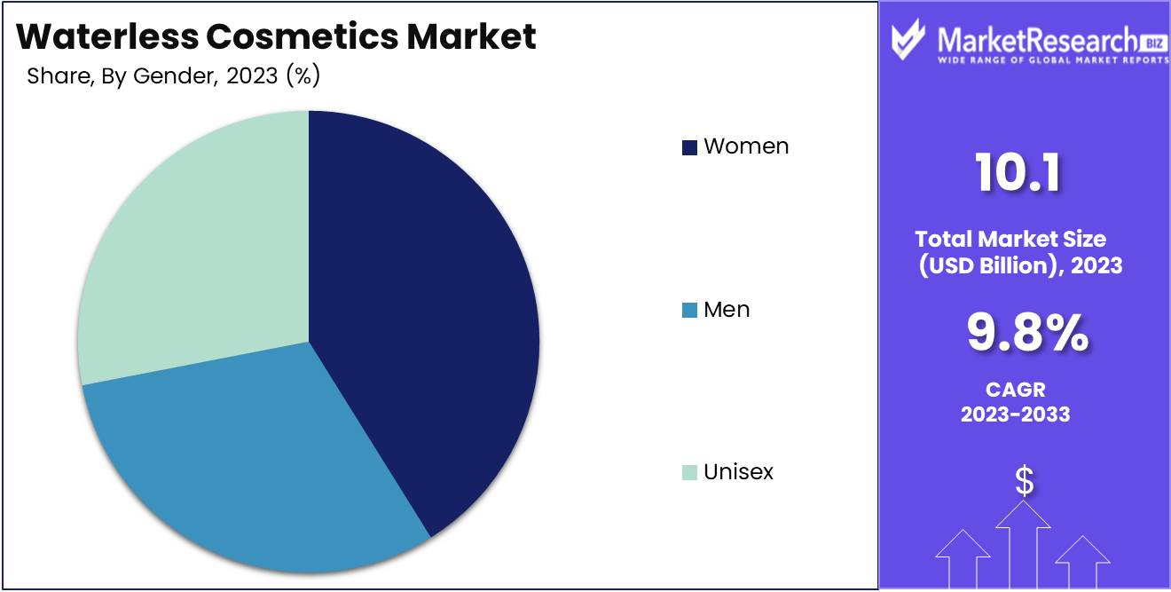 --By Gender: Women dominated the waterless cosmetics market by gender.