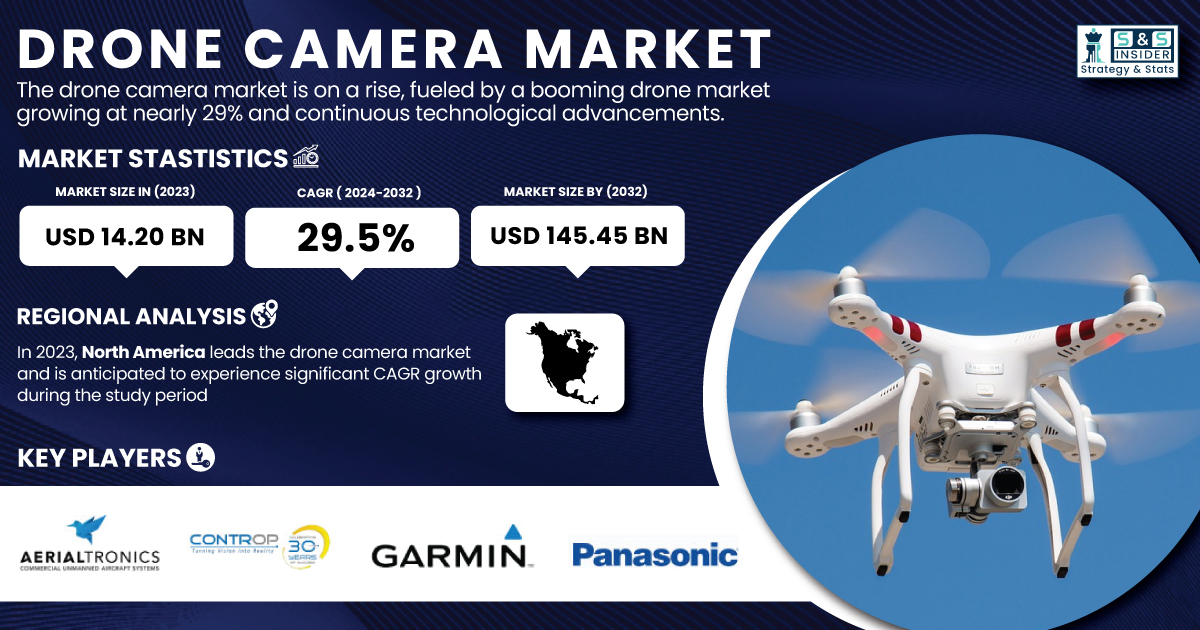 AUSTIN, TX, UNITED STATES, February 3, 2025 /EINPresswire.com/ -- Market Size & Industry InsightsAs Per the SNS Insider,“The Drone Camera Market Size was valued at USD 14.20 Billion in 2023 and is expected to reach USD 145.45 Billion by 2032 and grow at a CAGR of 29.5% over the forecast period 2024-2032.”