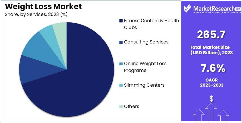 Weight Loss Market was valued at USD 265.7 Billion in 2023, and is expected to reach USD 542.7 Billion in 2033, at a CAGR of 7.6%