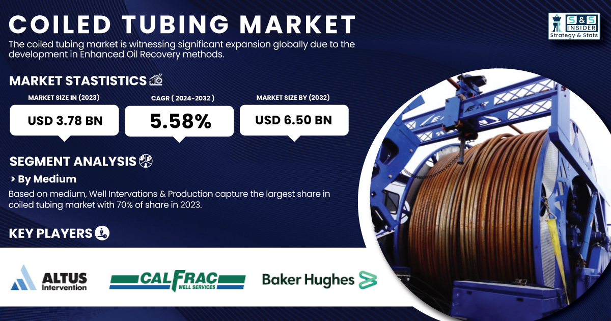 AUSTIN, TX, UNITED STATES, February 3, 2025 /EINPresswire.com/ -- The Coiled Tubing Market was valued at USD 3.78 Billion in 2023. It is expected to grow to USD 6.50 Billion by 2032, at a CAGR of 5.58% during the forecast period from 2024 to 2032.Coiled Tubing Market: Growth, Technological Advancements, and Expanding Applications in Oil & Gas and Geothermal Energy
