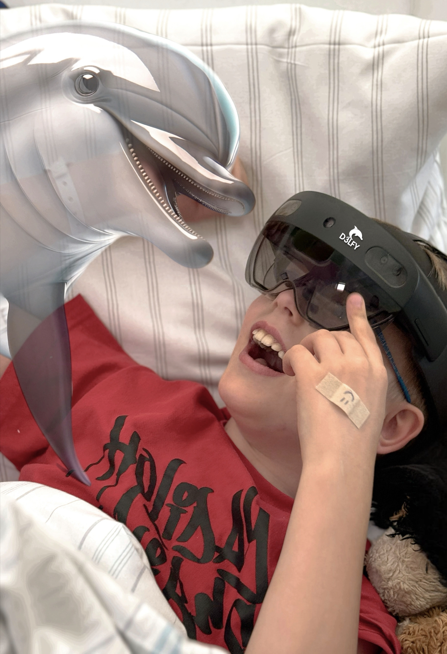 The hologram dolphin offers an interactive experience, responding to touch and movement. Scientific studies show that interacting with the hologram dolphin can trigger the release of oxytocin (the “cuddle hormone”) while reducing stress hormones. "This creates a calming atmosphere for all patients in hospitals, which is particularly valuable for people in isolation, in intensive care units or receiving palliative care," says Andreas Feyerabend, specialist consultant for psychotraumatology.