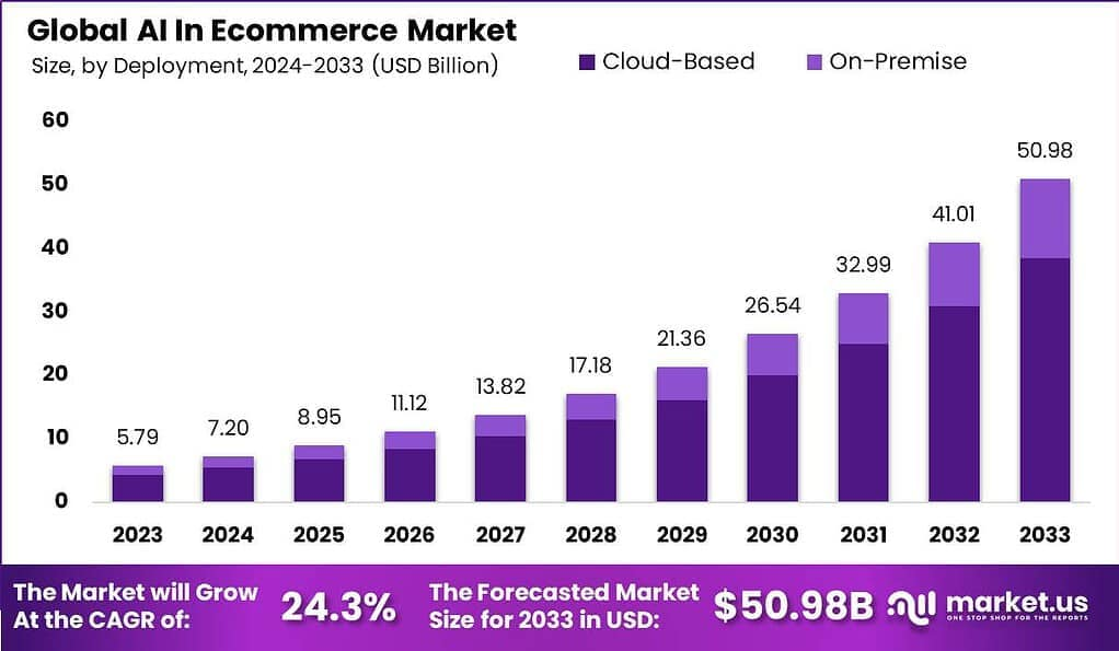 AI In Ecommerce Market Boosts Online Platform By USD 50.98 billion by 2033, CAGR at 24.3%
