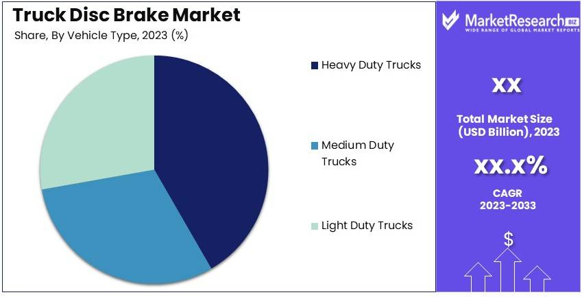 -- By Vehicle Type Analysis: Heavy Duty Trucks lead with 45%; they require robust braking systems due to their size and load capacity.