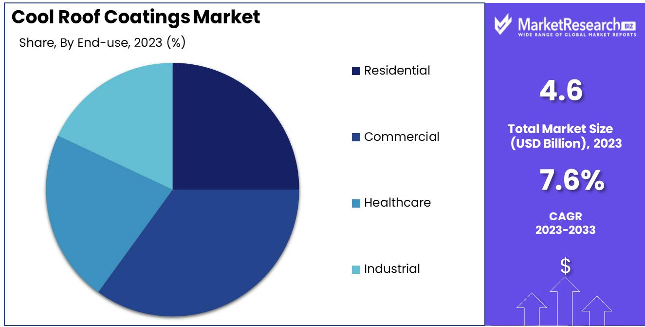-- Market Growth: The Global Cool Roof Coatings Market was valued at USD 4.6 Bn in 2023. It is expected to reach USD 9.4 Bn by 2033, with a CAGR of 7.6% during the forecast period from 2024 to 2033.