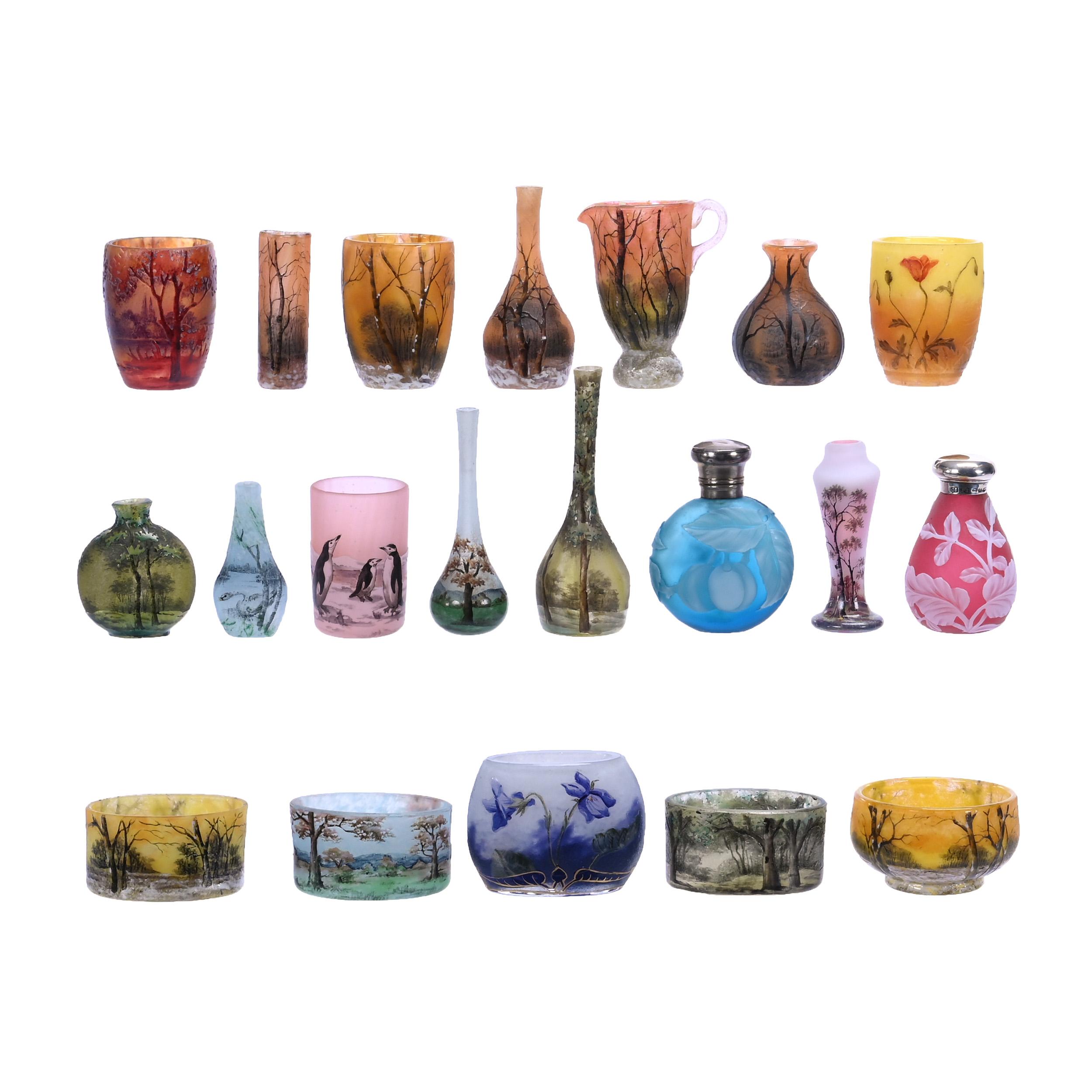 Oval French Cameo and enamel art glass vase by Daum Nancy, with a gorgeous winter scene décor, displaying great form (est. $2,000-$3,500).
