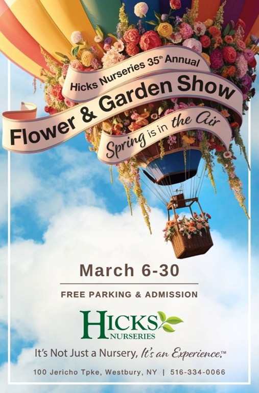 WESTBURY, NY, UNITED STATES, February 10, 2025 /EINPresswire.com/ -- Hicks Nurseries, Long Island’s premier garden center will host its 35th annual Flower & Garden Show March 6-30. This year’s theme, ‘Spring is in the Air’ showcases the wonders of spring taking flight.The much-anticipated free indoor event is a main attraction at the Westbury, New York, garden center and draws attendees from all over the tri-state area. It features eight unique gardens in full bloom bursting with life and color, giving revelers a stunning preview of the season to come.