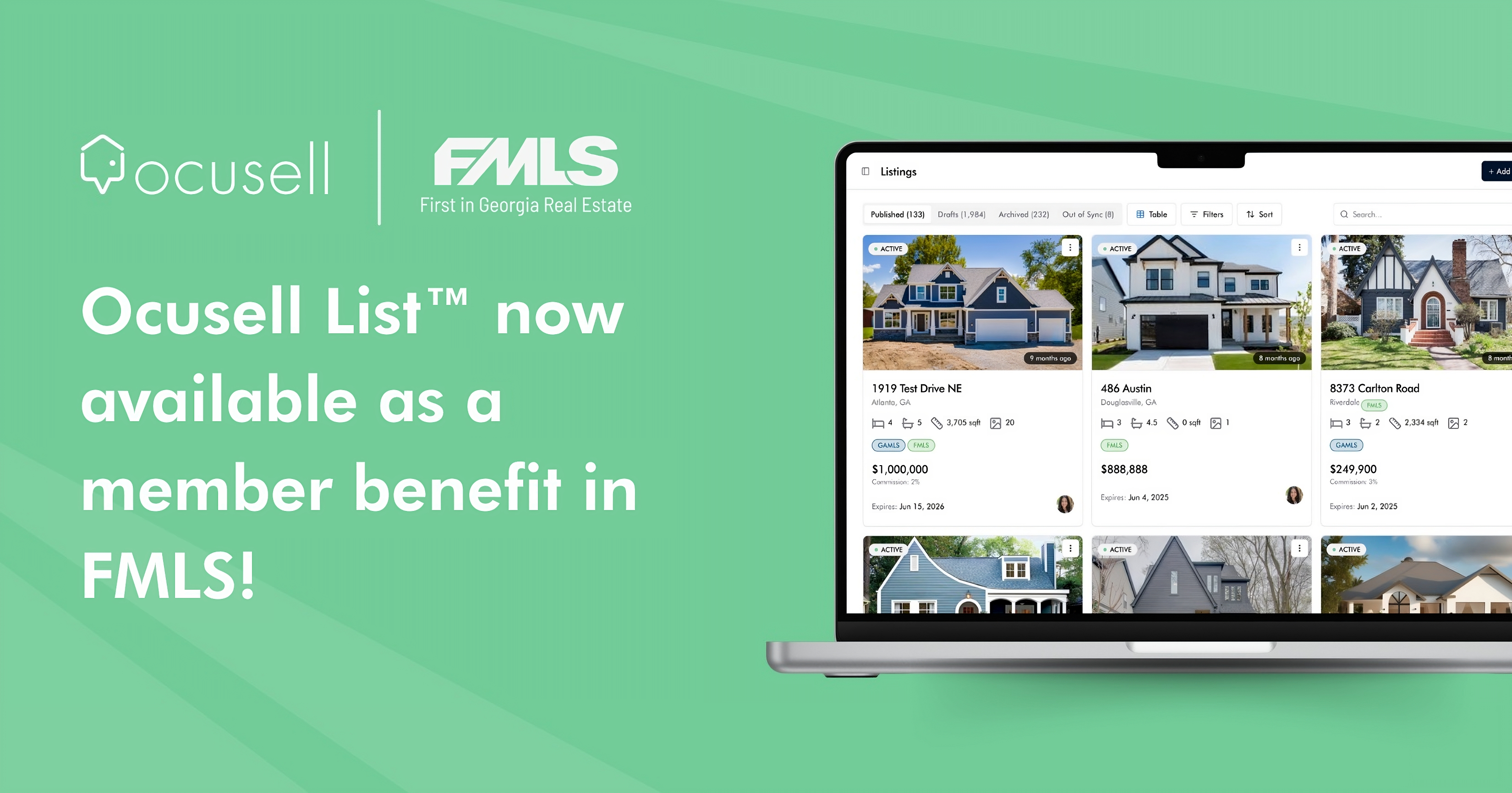 "Ocusell is a game-changing listing management product that utilizes AI to enable listing agents to add and edit their listings in FMLS easily,” said Jeremy Crawford, FMLS President & CEO. “Plus, this innovative tool allows FMLS agents and brokers to input their listings once and seamlessly distribute them to other participating MLSs, saving time and enhancing efficiency.”