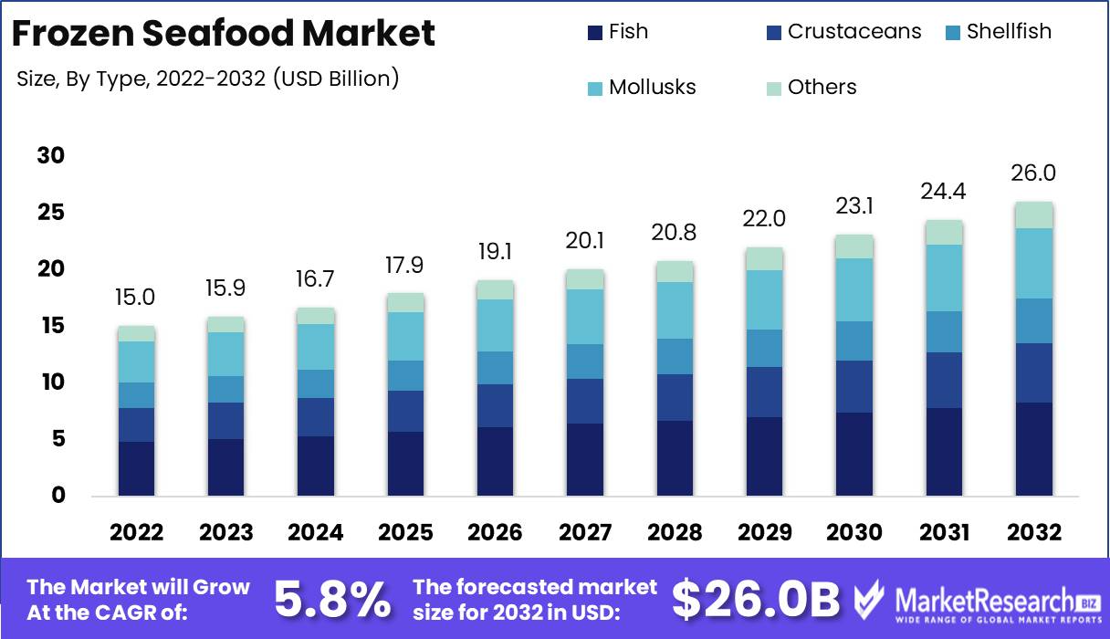 Frozen Seafood Market Reaching USD 26.0 Billion by 2032