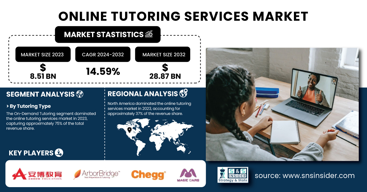 AUSTIN, TX, UNITED STATES, February 6, 2025 /EINPresswire.com/ -- The SNS Insider report indicates that the Online Tutoring Services Market size was valued at USD 8.5 billion in 2023 and is expected to grow to USD 28.9 billion by 2032, growing at a CAGR of 14.59%% over the forecast period of 2024-2032.Get Sample Copy of Report: https://www.snsinsider.com/sample-request/2935