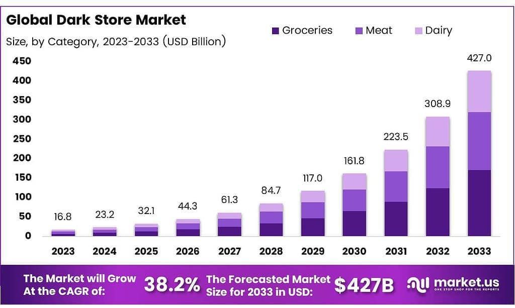Dark Store Market to Reach 427B USD by 2033 from 16.8B USD in 2023 at 38.2% CAGR