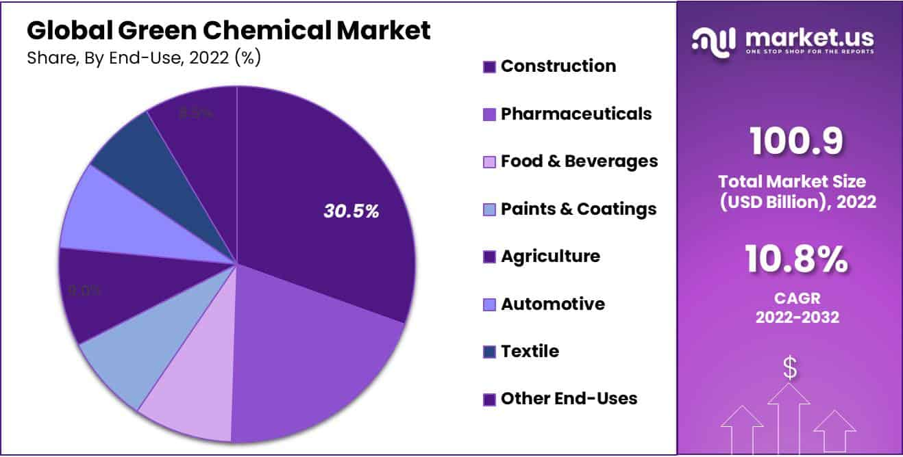 • End User Analysis: Of these, the construction segment held a 30.5% share of the total market for green chemicals in 2022