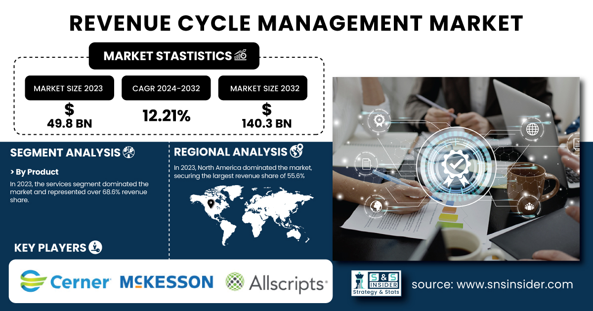 AUSTIN, TX, UNITED STATES, February 6, 2025 /EINPresswire.com/ -- The SNS Insider report indicates that the Revenue Cycle Management Market size was valued at USD 49.8 billion in 2023 and is expected to grow to USD 140.3 billion by 2032, growing at a CAGR of 12.21% over the forecast period of 2024-2032.The growth of the market is attributed to the increasing complexity of healthcare systems, the growing demand for automation in medical billing and payment processes, and the shift toward digital solutions in healthcare facilities.