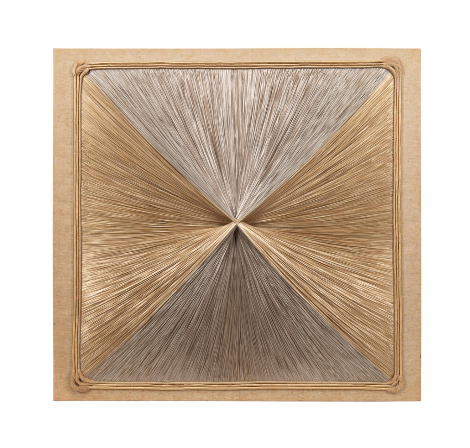 Twisted metallic threads on canvas tapestry by Sheila Hicks (American / French, b. 1934), titled Macro Broderie, unframed, 48 inches tall by 50 inches wide (est. $20,000-$30,000).
