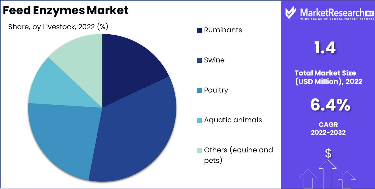Feed Enzymes Market size is expected to be worth around USD 2.5 Bn by 2032 from USD 1.4 Bn in 2022, growing at a CAGR of 6.4%