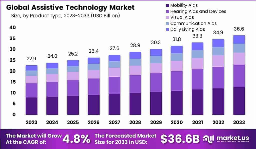 Assistive Technology Market Boost Growth By USD 36.6 billion by 2033, CAGR by 4.8%