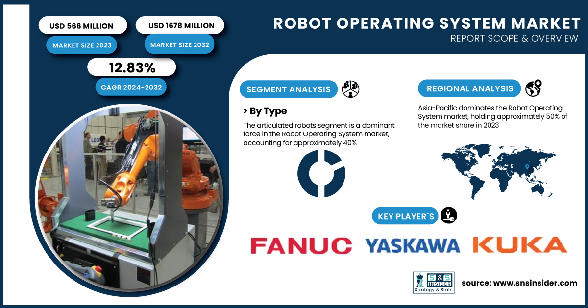 AUSTIN, TX, UNITED STATES, February 7, 2025 /EINPresswire.com/ -- Market Size & Industry InsightsAs Per the SNS Insider,“The Robot Operating System (ROS) Market was valued at USD 566 million in 2023 and is projected to expand to USD 1678 million by 2032, growing at a compound annual growth rate (CAGR) of 12.83% during the forecast period from 2024 to 2032.