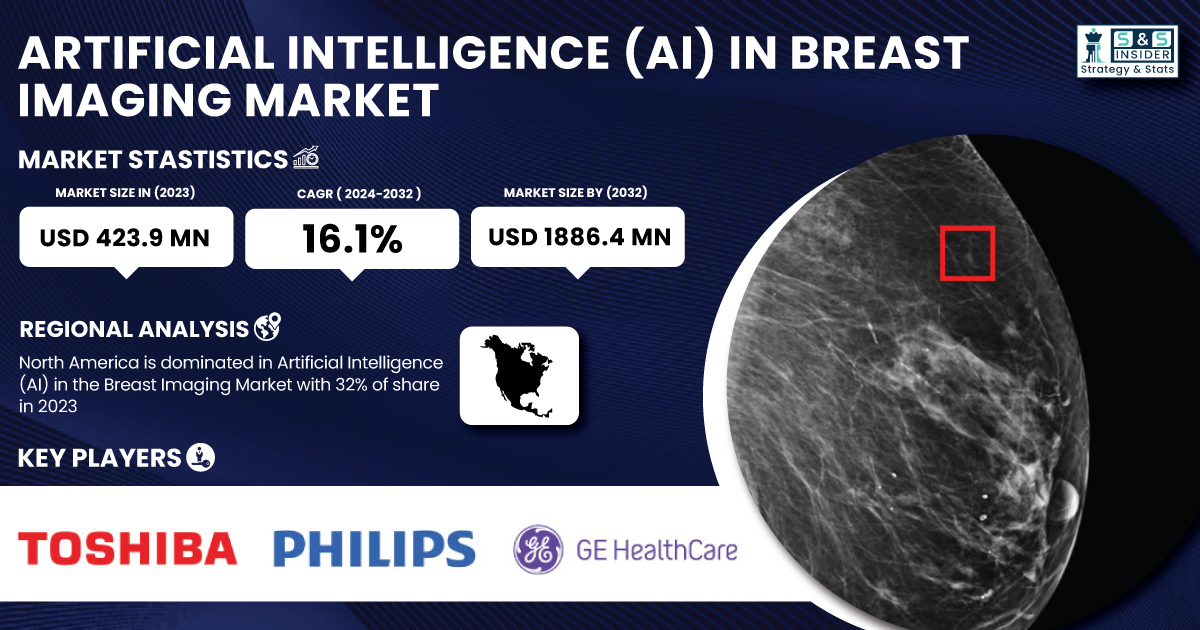 AUSTIN, TX, UNITED STATES, February 7, 2025 /EINPresswire.com/ -- According to Research by SNS Insider, The Artificial Intelligence (AI) in Breast Imaging Market was at USD 423.9 million in 2023 and is expected to grow to USD 1886.4 million in 2032, expanding at an impressive CAGR of 16.1% during the forecast period of 2024 to 2032.The main drivers for the market are the integration of AI in the early detection of the disease, the increase in the accuracy rate for diagnosis, and the growing rates of breast cancer in the international scenario.