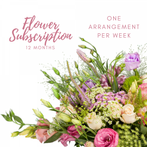 One custom floral arrangement per week for one year subscription services offered exclusively through Rose Of Sharon Floral Design Studio in Northwest Arkansas.