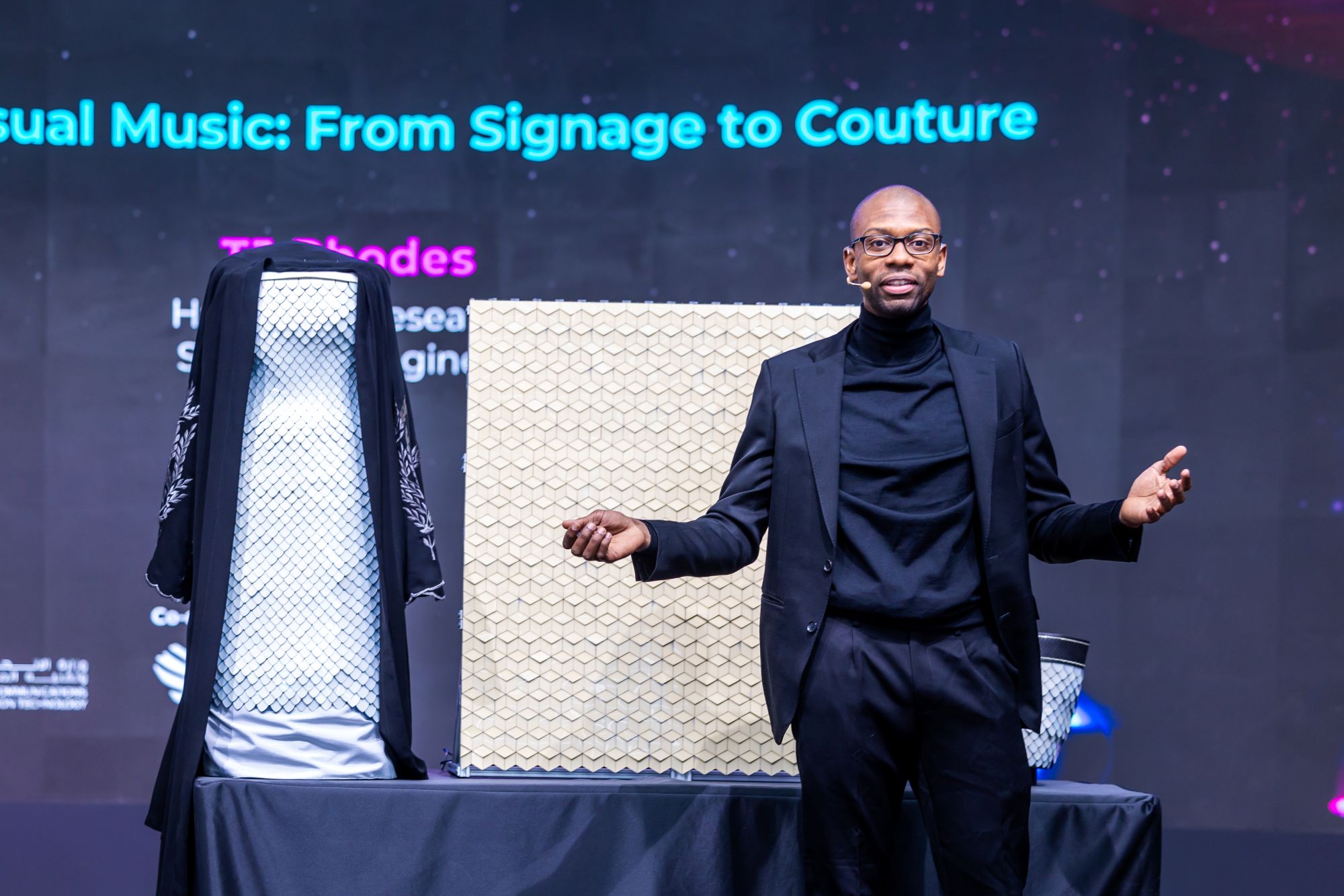 Elsewhere, TJ Rhodes, the Senior Research Scientist and Engineer on Adobe’s Project Primrose, talked audiences through the Middle East debut of its latest wearable technology. First premiered at Adobe Max in 2023, the Project Primrose dress uses non-emissive textiles and can change the way we merge fashion and technology.