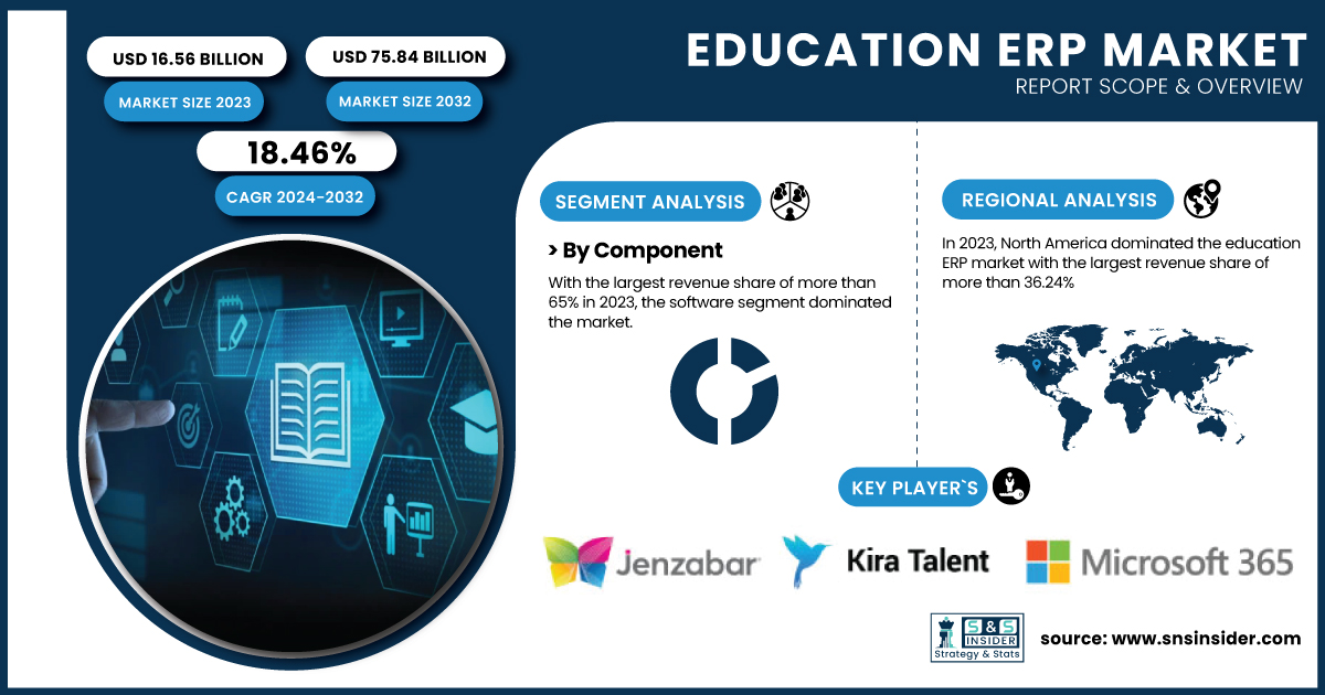 AUSTIN, TX, UNITED STATES, February 10, 2025 /EINPresswire.com/ -- Education ERP Market was valued at USD 16.56 billion in 2023 and is expected to reach USD 75.84 billion by 2032, growing at a CAGR of 18.46% from 2024-2032. The market is driven by the features that increase administrative efficiency, streamline management, and support data-driven decision-making. As there is an increase in demand for on-premise integration, the ERP systems improve resource allocation and collaboration within the educational institutions. These systems facilitate better operational effectiveness, changing the way schools, colleges, and universities manage their resources and communication.Get Sample Copy of Report: https://www.snsinsider.com/sample-request/3515