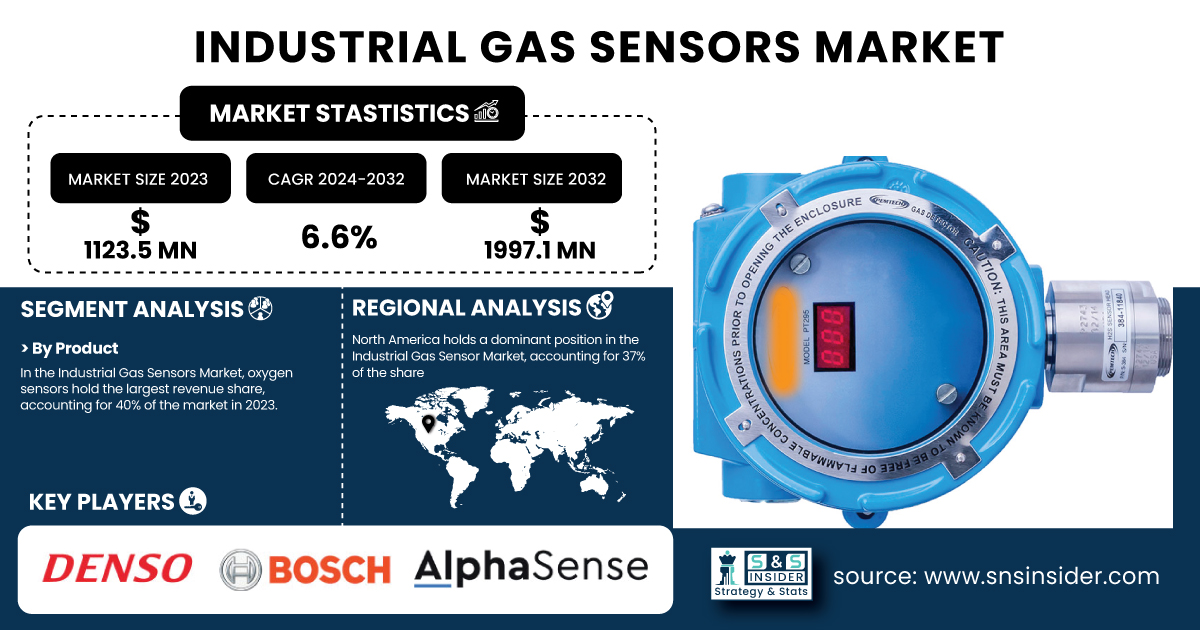 AUSTIN, TX, UNITED STATES, February 10, 2025 /EINPresswire.com/ -- Market Size & Industry InsightsAs Per the SNS Insider,“The Industrial Gas Sensors Market size was valued at USD 1123.5 million in 2023 and is expected to grow to USD 1997.1 million by 2032 and grow at a CAGR of 6.6 % over the forecast period of 2024-2032.”