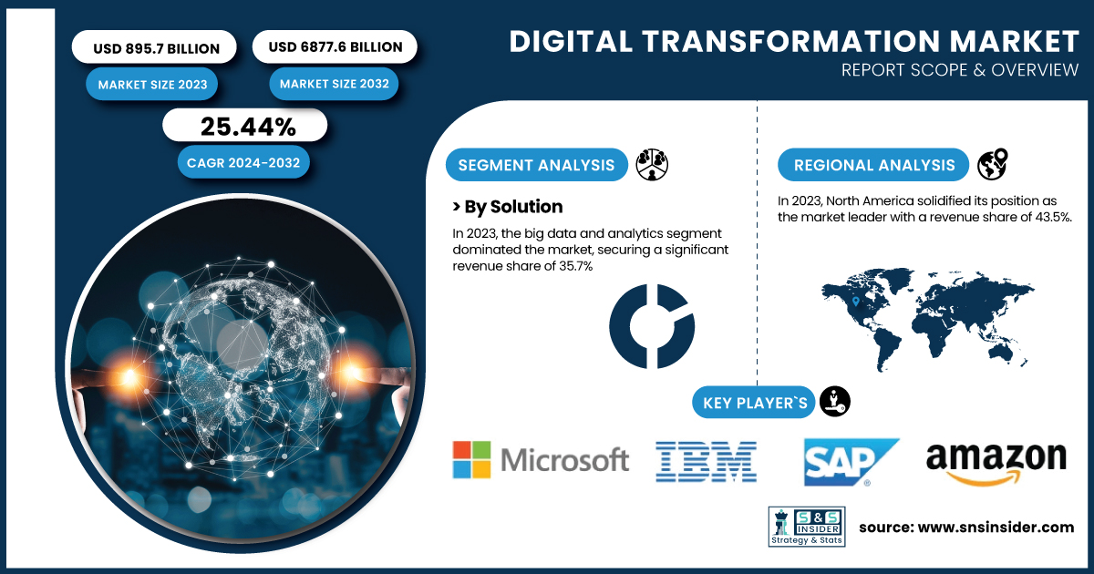 AUSTIN, TX, UNITED STATES, February 10, 2025 /EINPresswire.com/ -- The SNS Insider report indicates that the Digital Transformation Market was valued at USD 895.7 billion in 2023 and is expected to reach USD 6877.6 billion by 2032, growing at a CAGR of 25.44% over the forecast period 2024-2032.The increasing adoption of AI-powered chatbots, voice assistants, and sentiment analysis tools is driving digital transformation market expansion globally.Get Sample Copy of Report: https://www.snsinsider.com/sample-request/2834