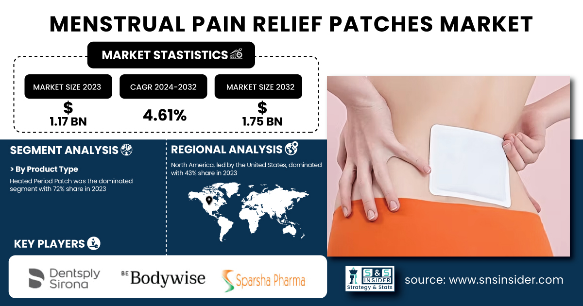 AUSTIN, TX, UNITED STATES, February 10, 2025 /EINPresswire.com/ -- According to Research by SNS Insider, The Menstrual Pain Relief Patches Market was valued at USD 1.17 billion in 2023 and is projected to reach USD 1.75 billion by 2032, growing at a CAGR of 4.61% from 2024 to 2032.The market growth is primarily driven by factors such as increasing focus on women health, coupled with high demand for non-invasive and drug free pain reliefs. The increasing disposable income along with initiatives from health organizations, governments to raise awareness regarding menstrual health is aiding the growth of the market. This is in line with recent government data, which indicated that more than 80% of menstruating individuals have period pain, with 30% experiencing such severe pain that they have difficulty with everyday activities. So, governments around the world are also spending money in the direction of menstrual health programs to ensure the accessibility of pain relief solutions, especially in underdeveloped areas. Example: For instance, U.S. Department of Health and Human Services (HHS) across 2024 increased funding for menstrual health awareness and affordability initiatives, creating additional product demand.