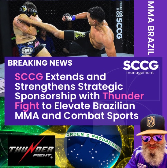 LAS VEGAS, NV, UNITED STATES, February 11, 2025 /EINPresswire.com/ -- SCCG NextGen, the talent agency vertical of SCCG Management, proudly announces the renewal of its sponsorship partnership with Thunder Fight and Thunder Fight Center, Brazil’s premier martial arts event organization and training venue. This continued collaboration underscores SCCG’s commitment to supporting innovative sports organizations in emerging markets like Brazil, where MMA is one of the fastest-growing and most exciting sports.