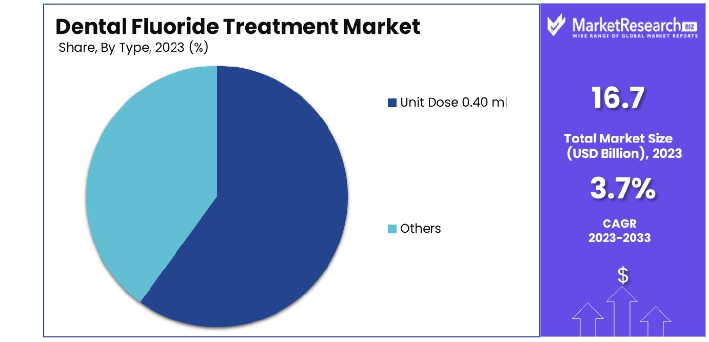 •By Type Analysis: Unit Dose 0.40 ml dominated the dental fluoride treatment market, holding 60% share in 2023. Its popularity is driven by precise fluoride application, reducing waste and ensuring consistent treatment efficacy. Dental clinics favor this format for ease of use and safety, particularly for pediatric and geriatric patients. The ‘Others’ category comprised 40%, offering varied fluoride dosages for specific patient needs. Innovations in fluoride delivery continue to shape this segment's growth.