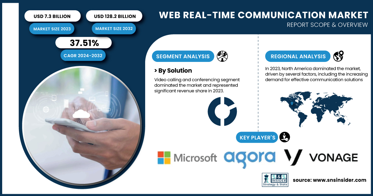 AUSTIN, TX, UNITED STATES, February 11, 2025 /EINPresswire.com/ -- The Web Real-Time Communication Market size was valued at USD 7.3 billion in 2023 and is expected to reach USD 128.2 billion by 2032, growing at a CAGR of 37.51% over the forecast period of 2024-2032. Growth is driven by adoption of emerging technologies adoption, regional network infrastructure expansion, increasing cybersecurity concerns, and an increase in cloud services usage. The vast implementation of WebRTC across sectors due to the provision of seamless and real-time communications has brought about collaboration and enhanced productivity globally.Get Sample Copy of Report: https://www.snsinsider.com/sample-request/3824