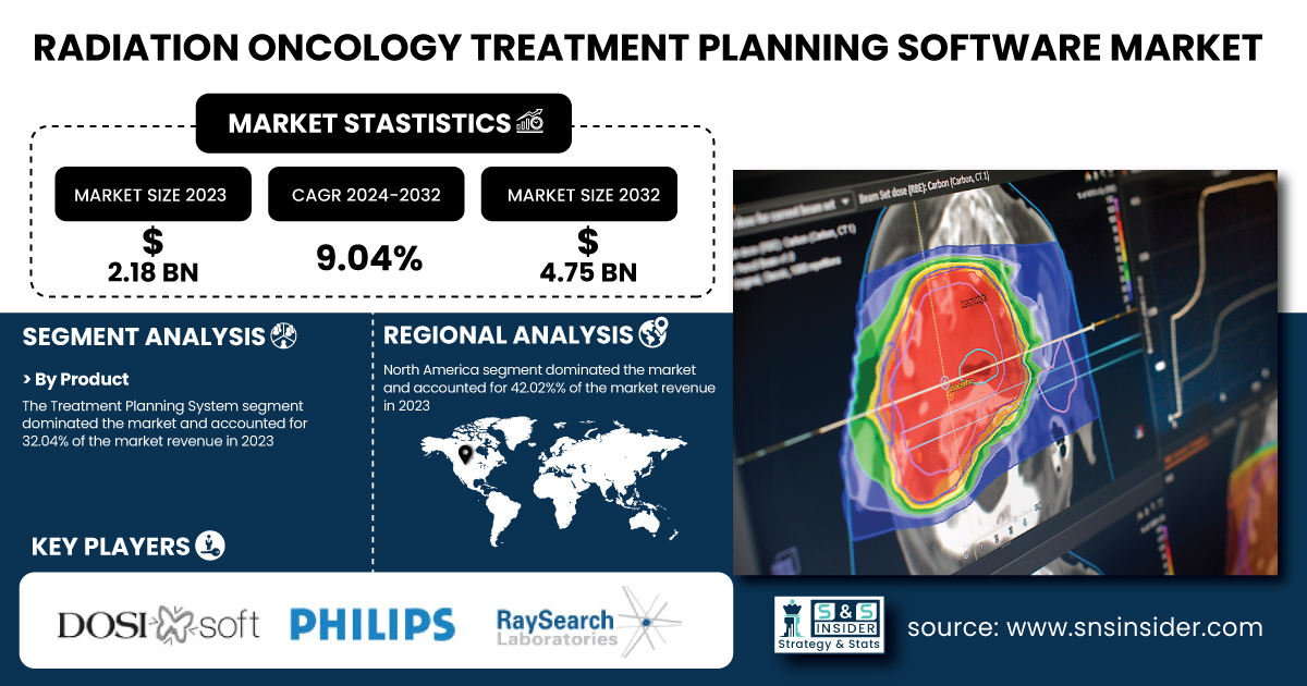 AUSTIN, TX, UNITED STATES, February 11, 2025 /EINPresswire.com/ -- According to Research by SNS Insider, The Radiation Oncology Treatment Planning Software Market was valued at USD 2.18 billion in 2023 and is projected to reach USD 4.75 billion by 2032, growing at a steady CAGR of 9.04% over the forecast period from 2024 to 2032.The growth is mainly due to the increasing rates of cancer in the population; technological advancements pertaining to radiation therapy; and the rapidly increasing adoption of precision medicine approaches are the primary contributing factors. Overall, with constantly increasing cancer incidents worldwide, high-end treatment planning software is getting more demand regarding the efficiency as well as preciseness of a radiation therapy method.