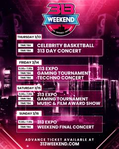5pm-8pm: Black Barbea’s Detroit Celebrity Basketball Game – Afternoon: Kick off 313 Day with an exciting game featuring local and national celebrities.