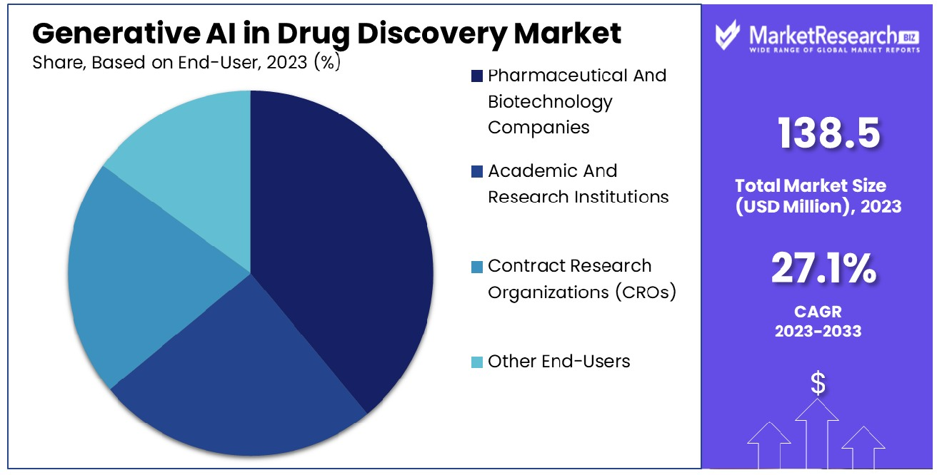 •End-User Analysis: Pharmaceutical and biotech companies lead the adoption of Generative AI in drug discovery, holding a 42% market share in 2023.